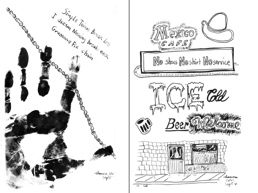 Bicycle Haiku is a reproduction of a sketchbook I kept while I rode my bicycle across the US in 1979. It contains an ink sketch and a haiku for each day of the three month 5,000 mile trip. A typical scene would be like the day I passed through Francisco, Indiana. On a page full of cow faces staring up at me, the haiku goes: “Collective silence/Like I walked into the wrong room/Every horned head turned.” (This was Annie Dillard’s favorite.) I scanned the 151 images in the original book (which is the same size as this one) and printed this at a books-on-demand printer in 2001. This book will not be a best-seller. It’s a book of poetry, and you know what that means. It might appeal to anyone intrigued by pedaling across a continent, or loners fascinated by blue highways and other little-traveled roads, or sensitive souls really into haikus, or sketches. I can imagine a few odd ducks who collect self-published books that will be thrilled by this book. Personal friends of mine may be interested in this vanity publishing. For the rest — that is for most normal people — there is nothing of fashionable interest here.
