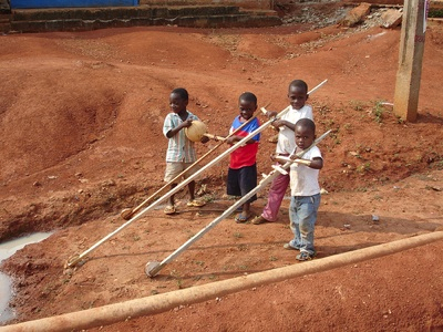 There seems to be no end to the ingenuity of African kids in making up simple toys with wheels. Previously we’ve seen trucks and planes. Here are toy “cars” you can steer without bending down. The kids add long handles to wheels. How cool is that? This pictures were found on Afrigadget.