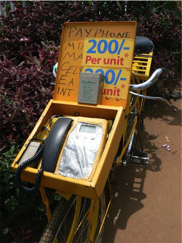 In Uganda, Ken Banks found this ingenious mobile phone booth. He wrote up the caption and posted his picture to Afrigadget, one of my favorite street use sites. His report: