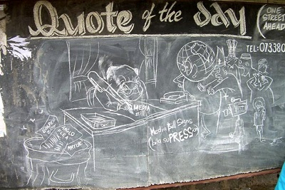According to a BBC news item datelined Nairobi, a one Humphrey Barasa has “has been drawing cartoons on the [Kenyan] bus stop shelter for the last six years.”