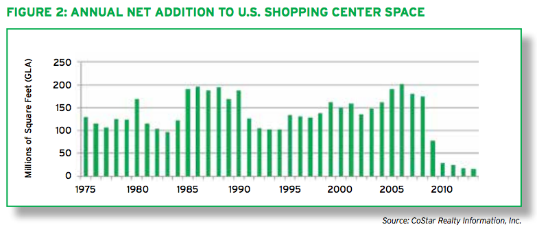 However, the pace of development continues to slow, with the number of shopping centers under construction down 22%