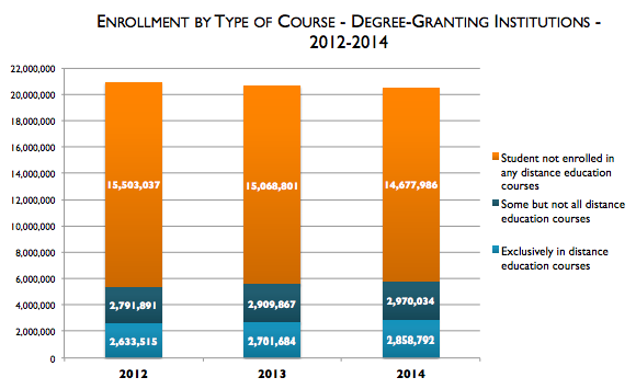 Enrollment By Type Of Course – Degree-Granting Institutions – 2012-2014