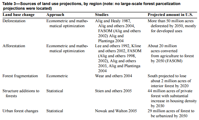 Here’s the summary of projected land-base changes affecting US forests: