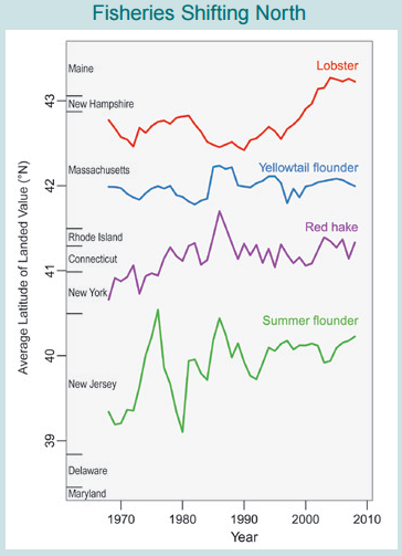 Northeaster fisheries shifting north, 1970-2010, NCA citing Pinsky and Fogarty