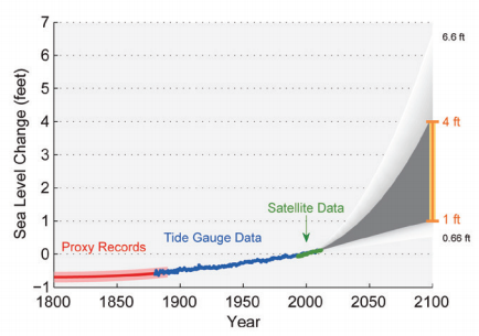 sea-level rise, 1800-2100, NCA citing Kemp, Church, Narem, Parris, Etheridge