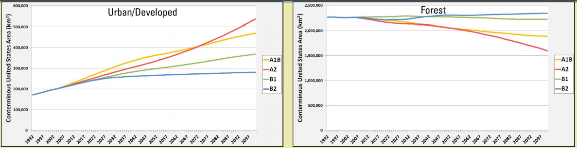USGS-urban-dev-and-forest-land-area-1992-2100