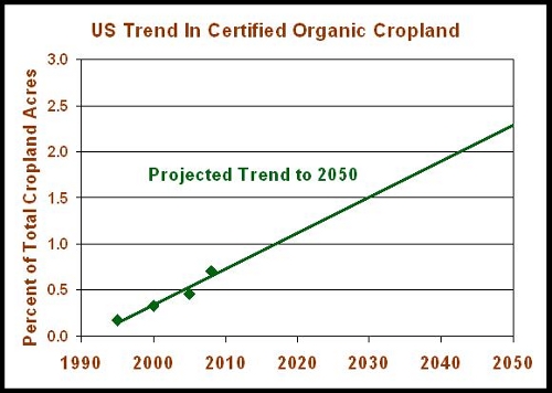 Organic Acreage as a % of Total, 1995-2050, Steve Savage