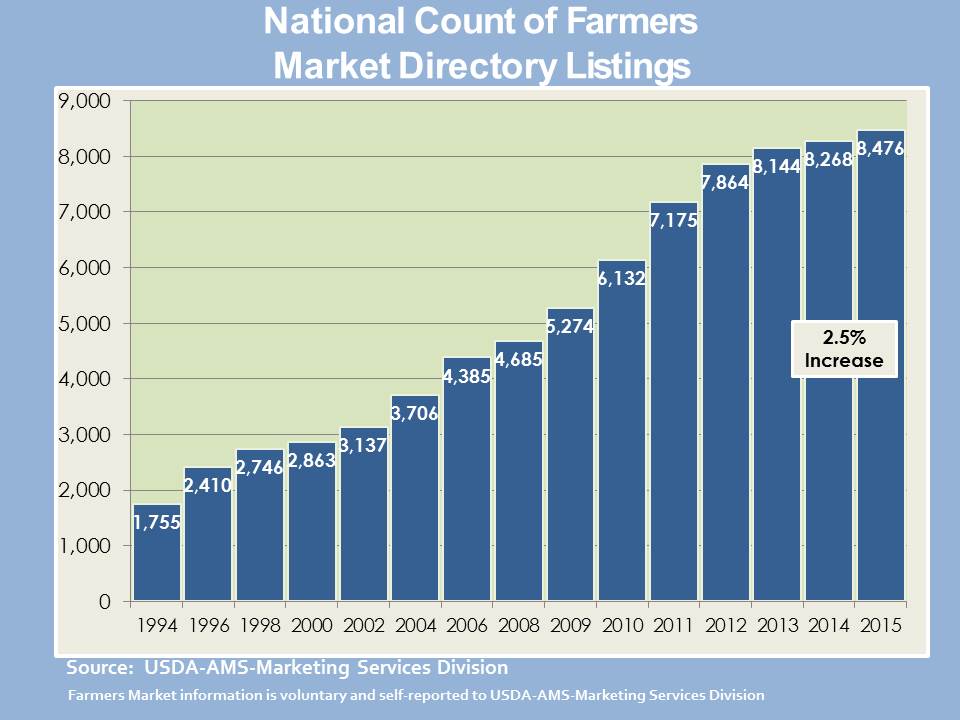 The number of farmers’ markets in the United States has grown steadily from 1,755 markets in 1994, when USDA began to track them, to over 8,144 in 2013