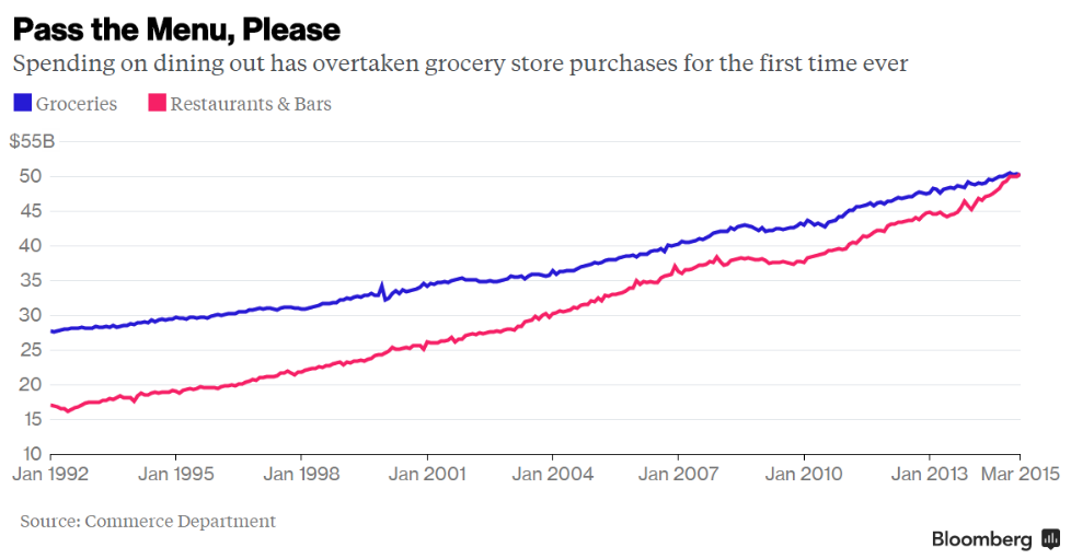 “Americans’ Spending on Dining Out Just Overtook Grocery Sales for the First Time Ever.”