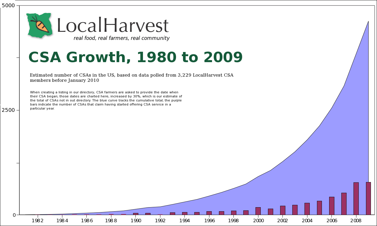 CSA Growth, 1980-2016, LocalHarvest