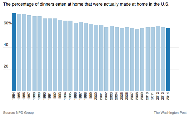 % of Dinners Eaten at Home and Made at Home, 1974-2014, NPD Group