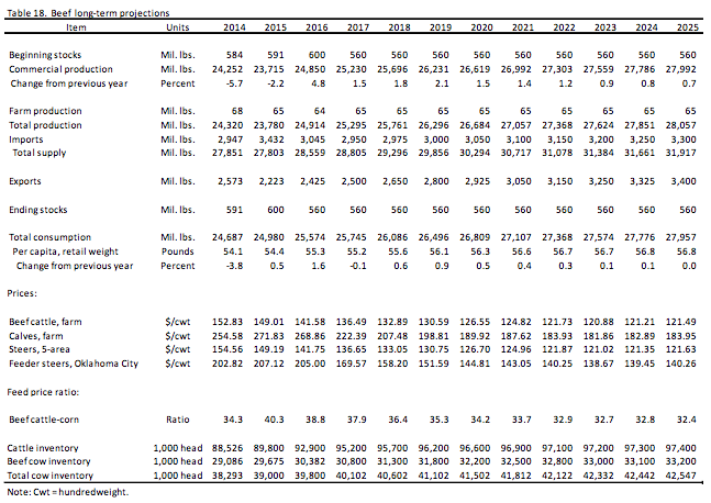 “USDA Agricultural Projections to 2025”