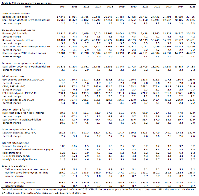 Includes the following macroeconomic assumptions (annual projections)
