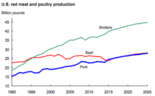 Meat Production, 1990-2025, USDA