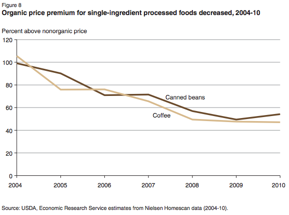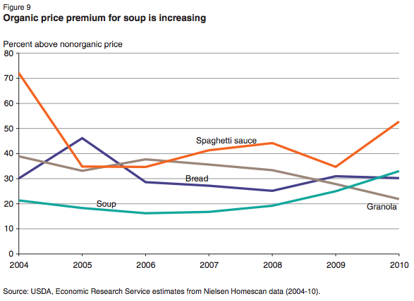 Organic Food Premiums, 2004-2010, Nielsen/USDA