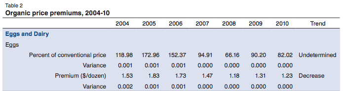 The study also calculated price premiums for organic products (Table 2).