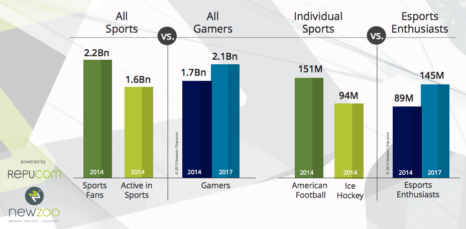 NewZoo is a video game and esports research firm. Below are excerpts from both their 2016 and 2015 reports. The 2015 report makes some interesting scale comparisons to traditional sports.