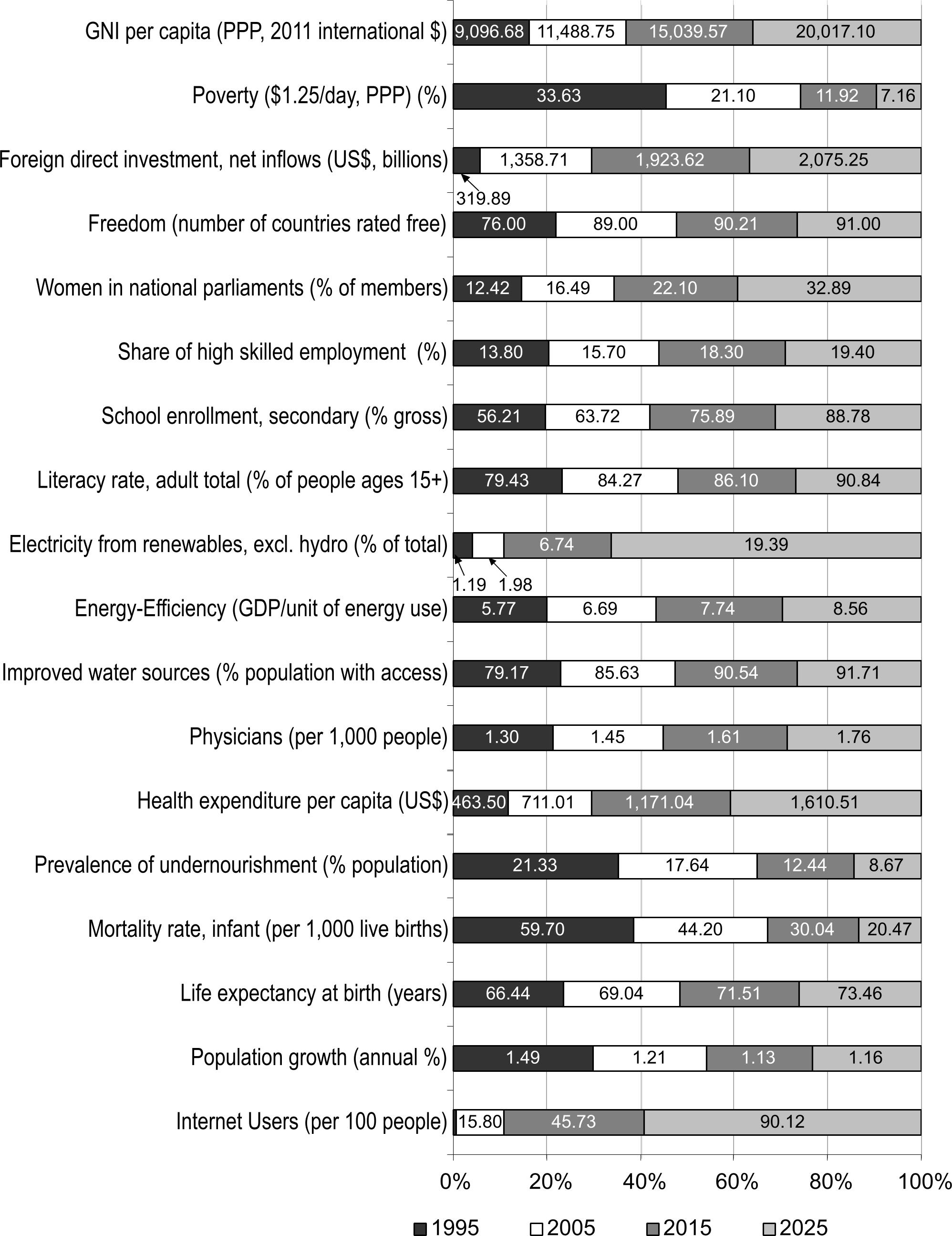 Src: Gordon, Theodore J. 2015. “2015 State of the Future Index.” The Millennium Project.