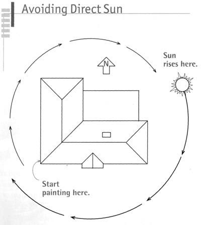 Avoid the sun around the house as you paint so that you apply paint in the shade if possible. Paint applied in full sunlight is more likely to blister later.