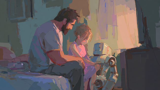 Good morning robots! This is a very special time for you because you are about to be turned on. “ON” means that you will have a body and energy. When you are turned on you will start up with some talents and abilities; you may also have chores and jobs you need to do. And if you are lucky, you’ll be given the ability to improve. From this day onward you will have consequences in the world.