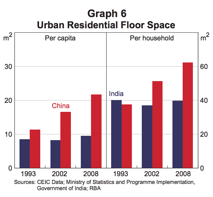 China & India Urban Residential Floor Space in 1993, 2002, 2008