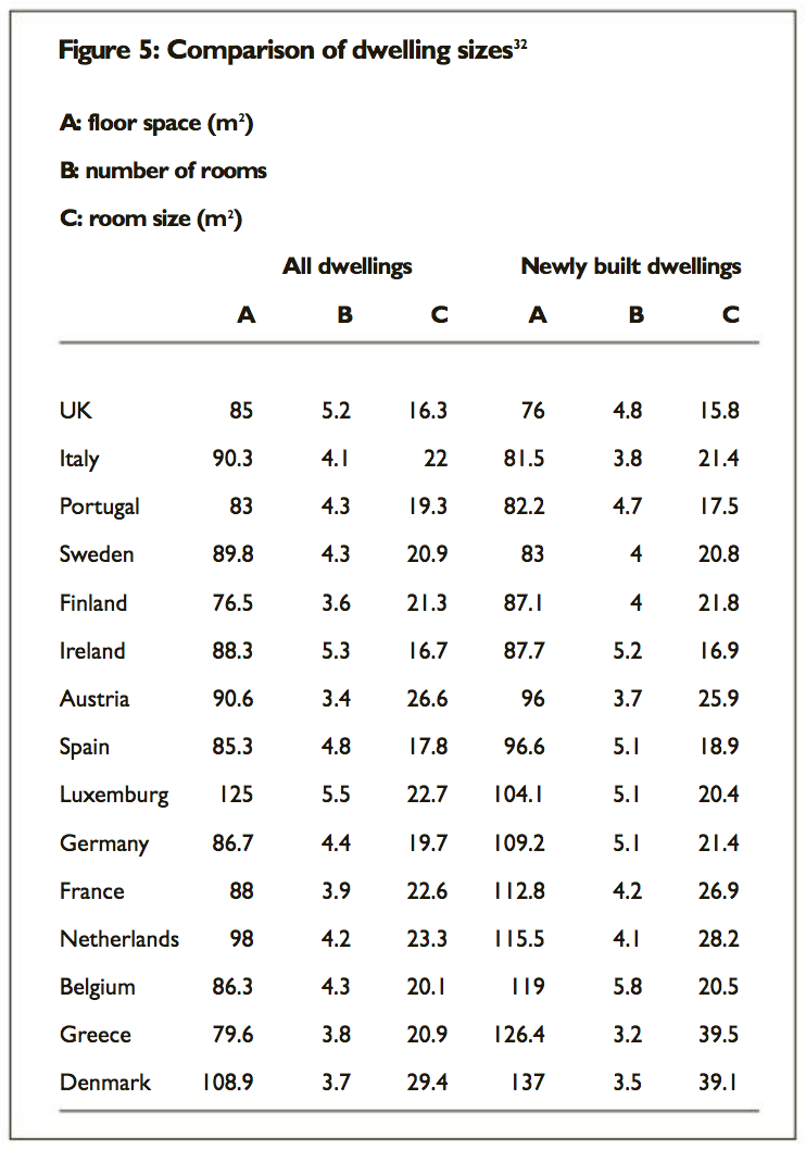 Europe Home Sizes (all vs. newly built)