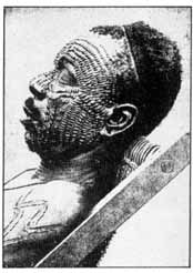 This detailed face pattern in ridged flesh is known as a "full rasp." The man could only be photographed asleep; he fled the camera as witchcraft.