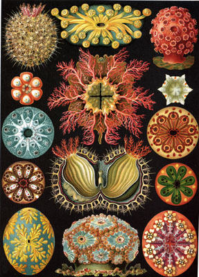 (Since Haeckel's work is in the public domain, there are a few sites where his worked has been scanned and posted online. Here's a German site with some nice hi-res scans of some of the more spectacular pages. Unless you want to make them huge, the book is still a cheaper way to "print" them out. -- KK — editors)