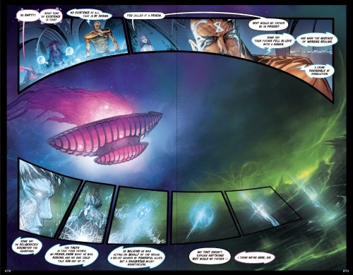 “The Silver Cord is an astonishing book at every level; the story, the graphics, and the production. Kevin Kelly’s creation of a new vision of the realms of angels, humans and their intersection is truly original and even grabbed a hard core atheist like me. These are not angels like any we have known in our biblical fairy tales both in substance and form. And what they want from us forced me to appreciate my life anew. Nearly every panel is beautiful and merits focused attention. Some are spectacular including the amazing foldout. The physical production of the book is at the same level as the content. The volume is massive but feels wonderful to hold and slowly peruse. I can’t wait for volume 3.” — Peter Schwartz, Futurist