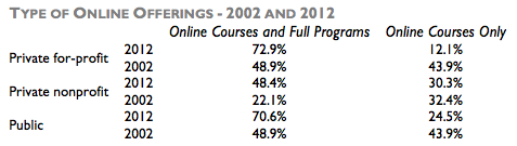 Percent of Postsecondary Institutions With Some Form Of Online Offering – 2002 and 2012
