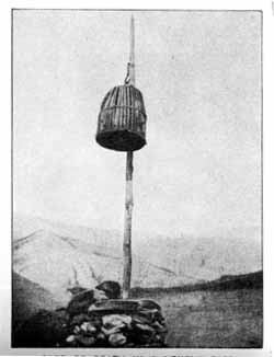 If one could peek through the bars of this cage there would be seen a little rubbish on the floor of it. That rubbish was once a man caught thieving in the Lataband Pass from Afghanistan into Bokhara. He was placed in this iron cage at the top of the pole and left to die of hunger. These man-cages are a favourite Afghan method of dealing with criminals.