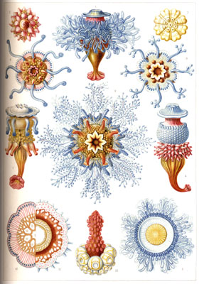 (Since Haeckel's work is in the public domain, there are a few sites where his worked has been scanned and posted online. Here's a German site with some nice hi-res scans of some of the more spectacular pages. Unless you want to make them huge, the book is still a cheaper way to "print" them out. -- KK — editors)
